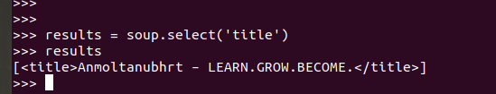 Using this command we are now storing the content of the request into an lxml. This makes it easier to fetch. For instance, if you want to check what is the title of the website, all you got to do is –